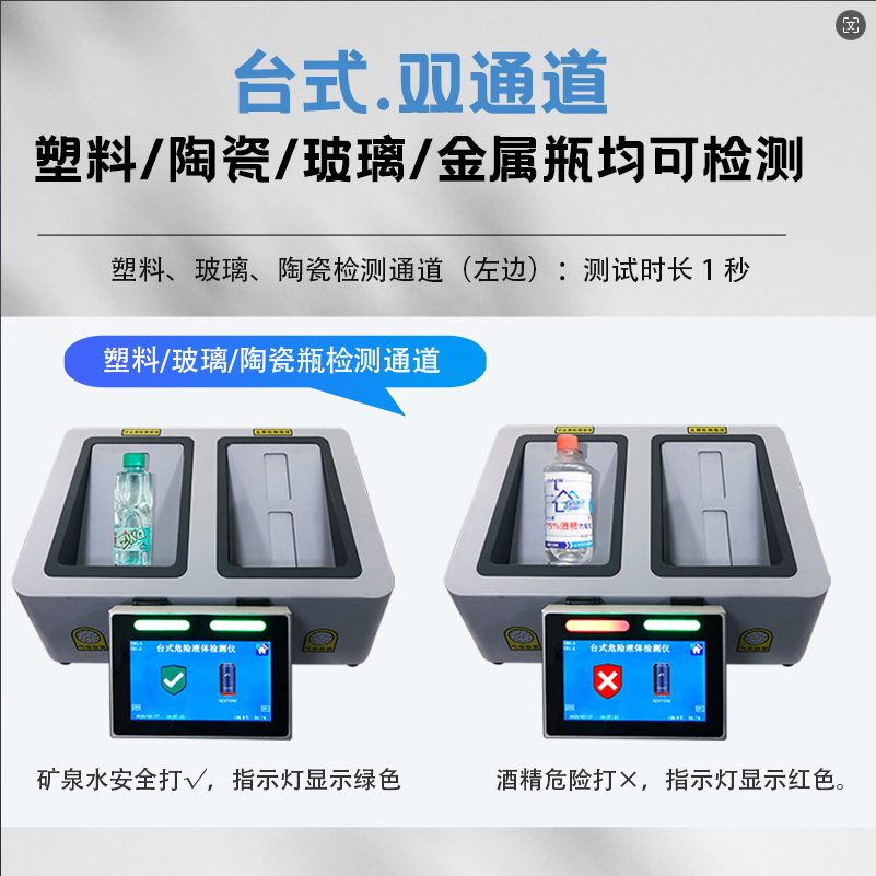 3、檢測速度:僅需1秒即能檢測出非金屬材質(zhì)瓶液體。